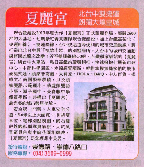 [中國時報] 北台中雙捷運 朗闊大境皇城 ...