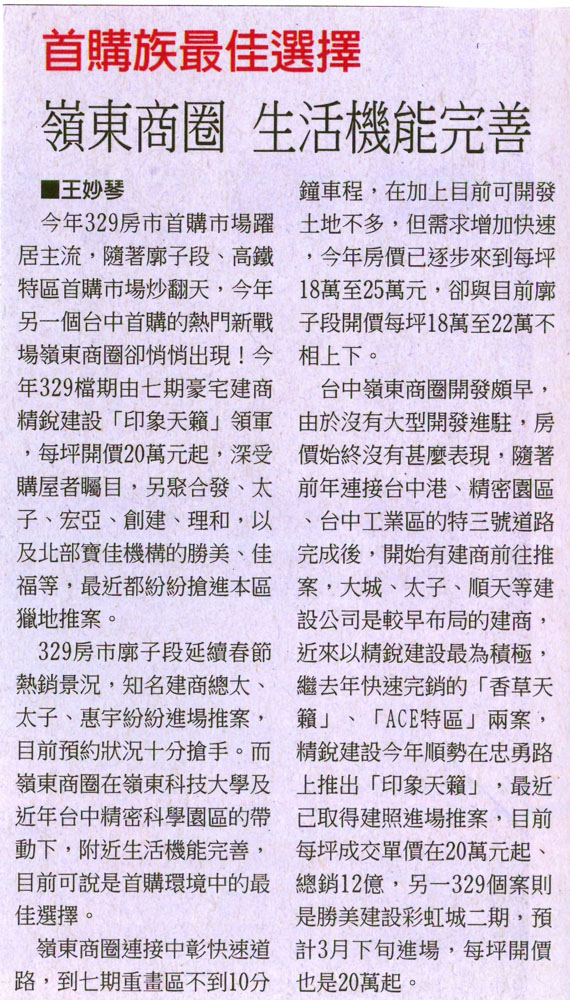 [工商時報] 嶺東商圈 生活機能完善 ...