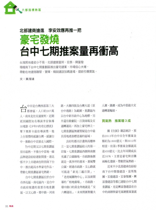 [財訊] 豪宅發燒 台中七期推案量再衝高 ...