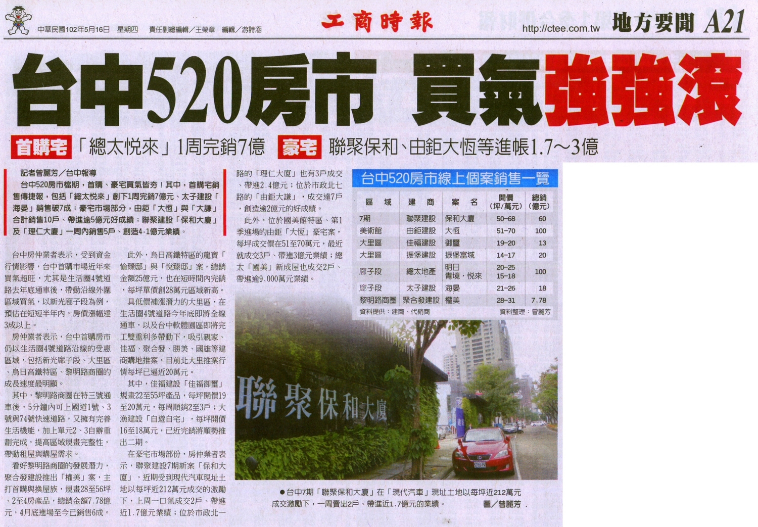 [工商時報] 台中520房市 買氣強強滾 ...