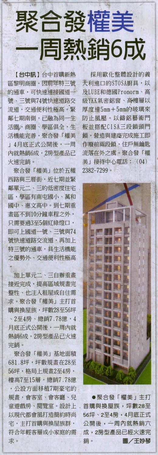 [工商時報] 聚合發權美 一周熱銷6成 ...