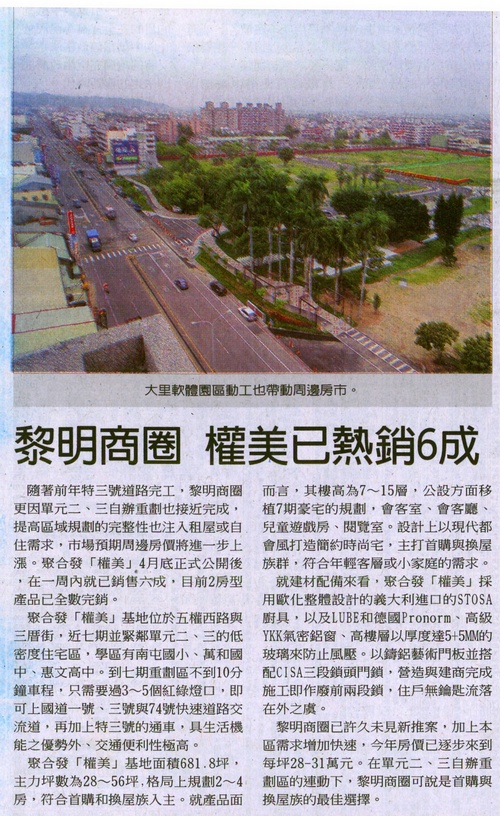 [中國時報] 黎明商圈 權美已熱銷6成 ...