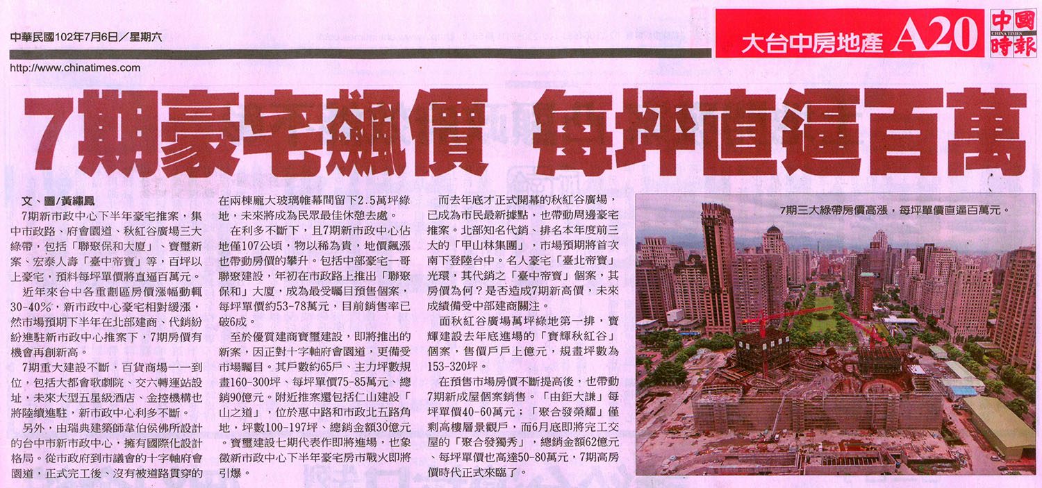 [中國時報] 7期豪宅飆價 每坪直逼百萬 ...