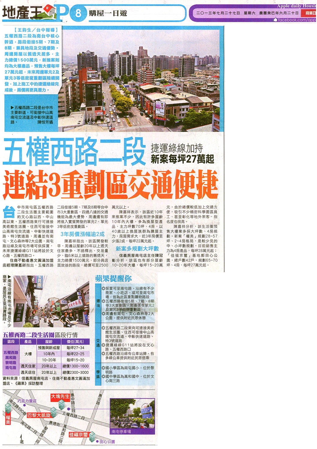 [蘋果日報] 五權西路二段 連結3重劃區交通便捷 ...