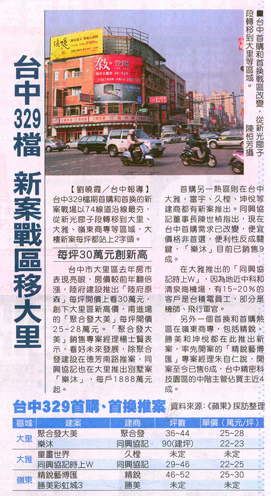 [蘋果日報] 台中329檔 新案戰區移大里 ...