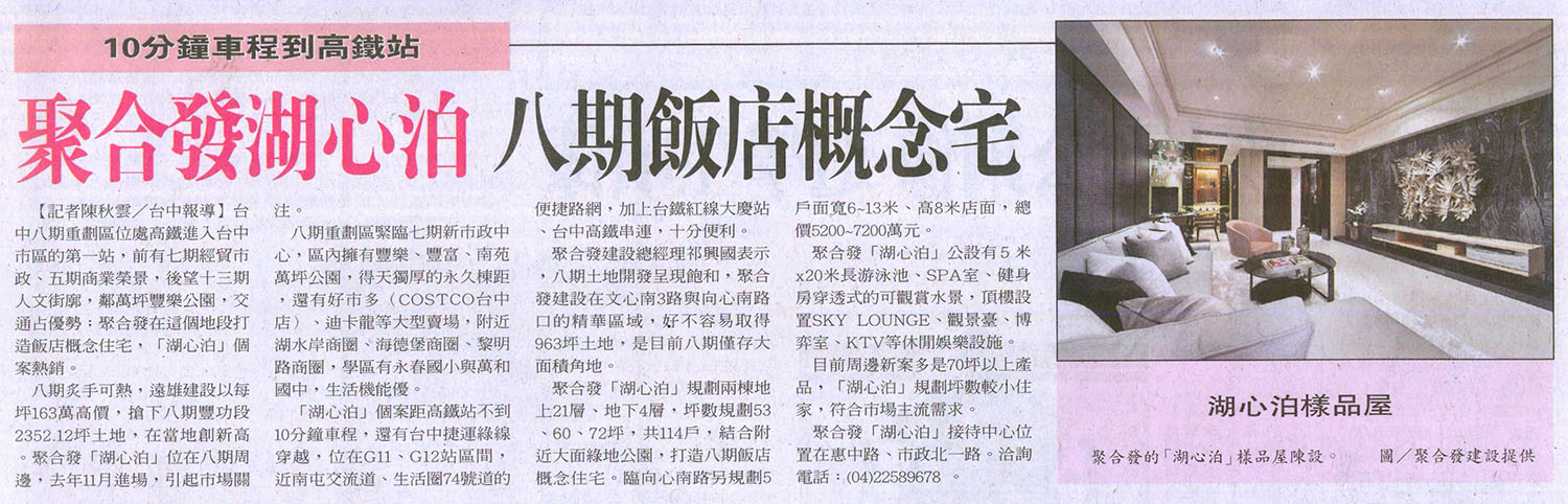 [聯合報] 聚合發湖心泊 八期飯店概念宅 ...