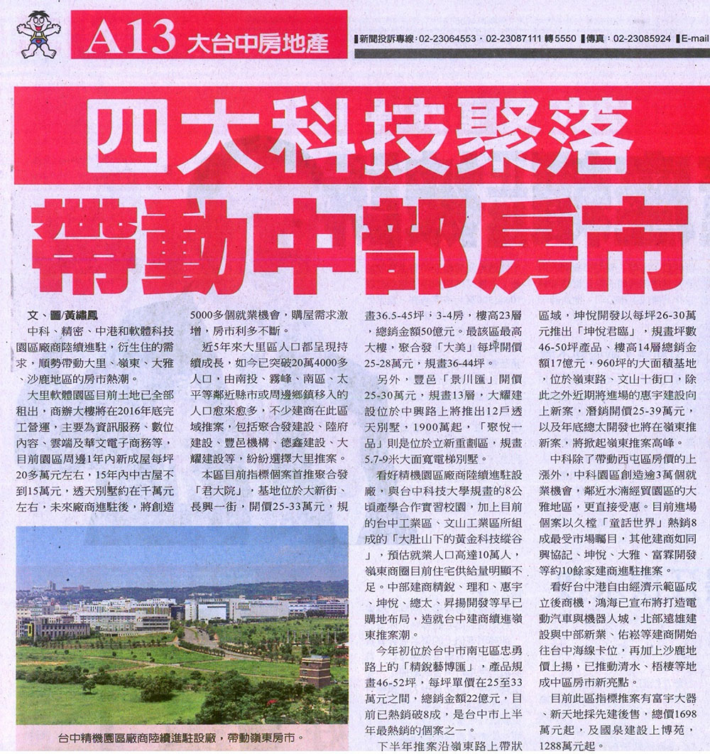 [中國時報] 四大科技聚落 帶動中部房市 ...